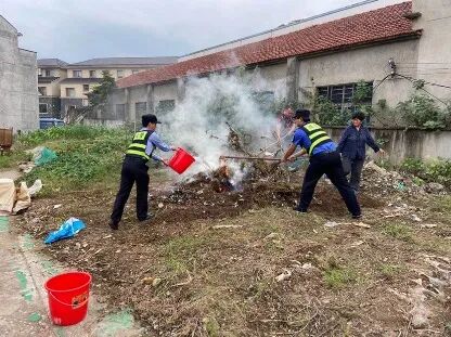 碧空小组、执法局、两部门联合出动扑灭露天焚烧